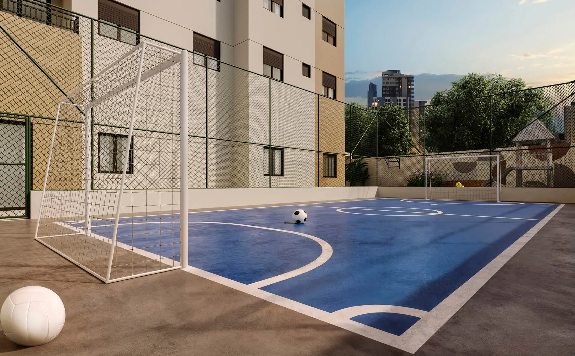 Espaço Convivência, Quadra de Beach Tennis, Piscina Adulto com Deck Molhado, Piscina Infantil, Sauna, Descanso Sauna, Churrasqueira, Fitness Externo, Playground, Quadra, Salão de Festas, Academia, Lounge Bar, Salão Gourmet, Salão de Jogos, Brinquedoteca, Espaço Beleza, Mini Market, Bicicletário, Espaço Pet, Lockers, Copa para Funcionários.